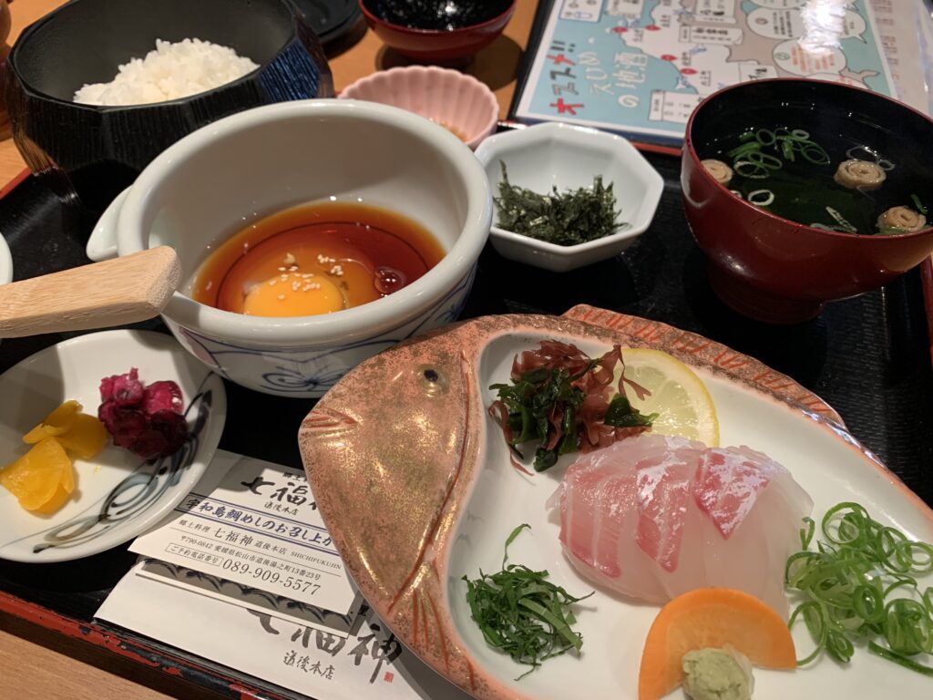 愛媛県には鯛めしが2種類あります。鯛とご飯を一緒に炊く鯛めしと、今回食べたお刺身に卵をといたタレをつけてご飯にかける鯛めしです。お好み焼きの広島風と関西風みたいですね。私は宇和島では主流の今回食べた鯛めしが好きです。