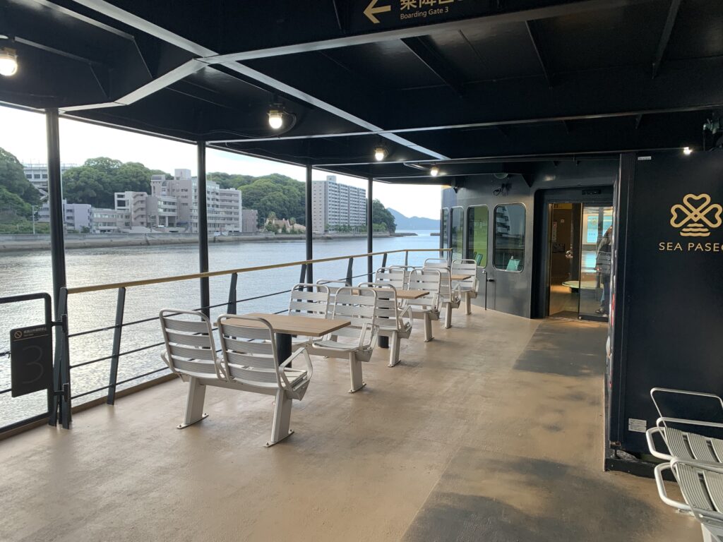 特に私は↑このOZASEKIエリアが大好きで足元が広く、旅行者・ビジネス使用の方々が海を見ながら思い思いの時間を過ごされていました。
