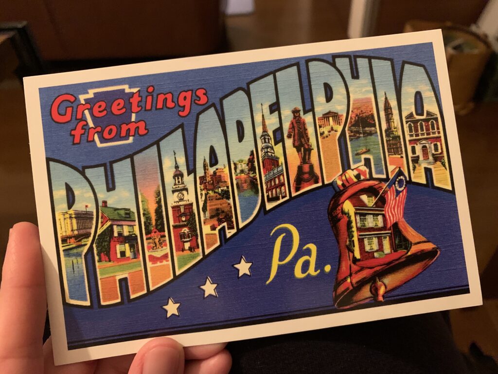 マイクがくれた自国フィアデルフィアのカード。文字の中には有名な観光名所が描かれている。