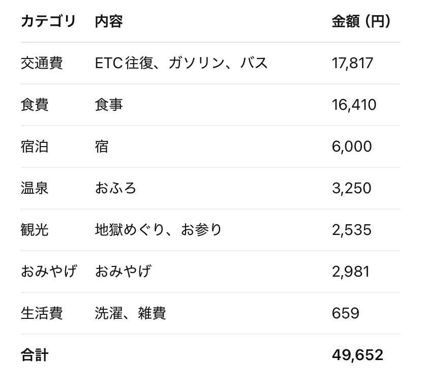 最後に3泊4日の大分温泉旅行のまとめを記載します。