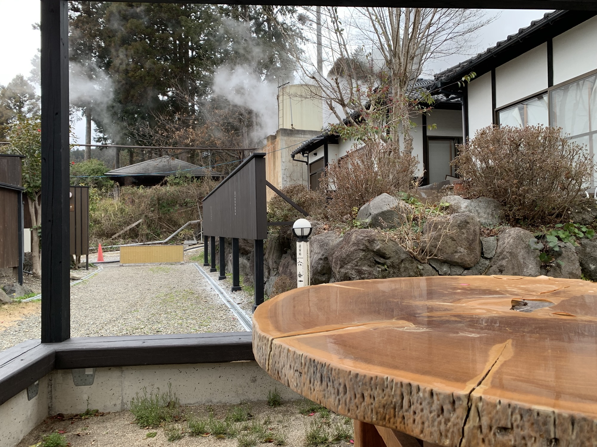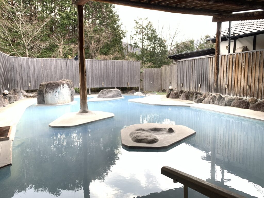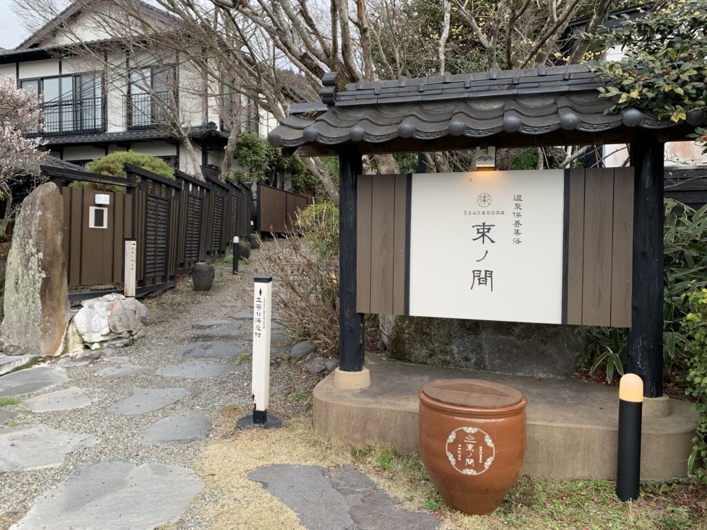 湯布院といえば、コバルトブルーのお湯に浸かりたくて、北部にある“束の間”という宿にある日帰り温泉に来ました。