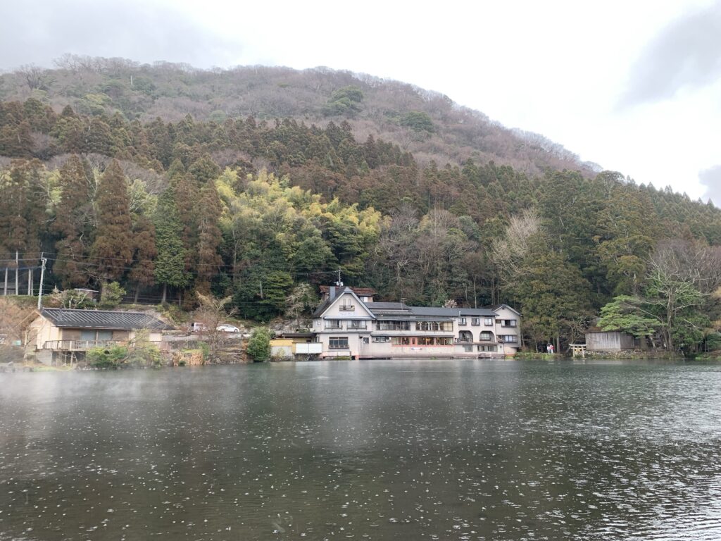 雨の金鱗湖。