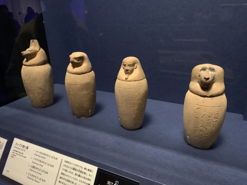 これは、胃や腸などの重要な内臓を処理した後に入れておく壺です。4つあり、それぞれに高貴とされていた動物のモチーフになっています。