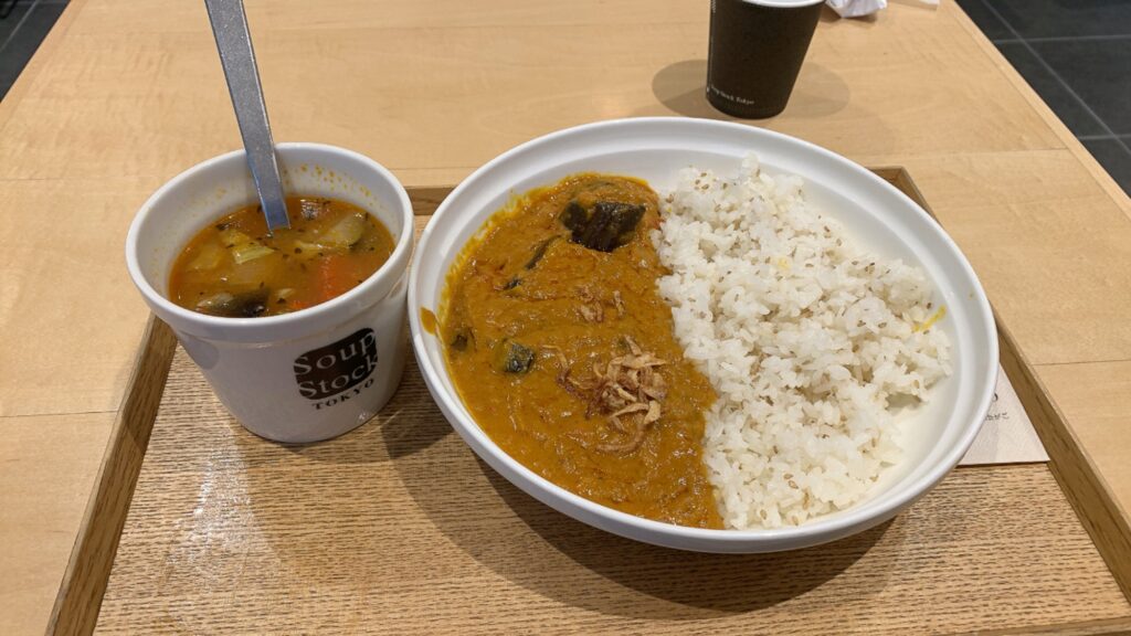 昼ごはんはスープストックトーキョーのカレーとスープのセット。