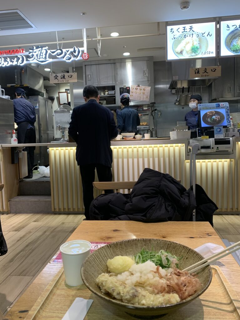 夜ごはんは新大阪のちくたまぶっかけうどん。